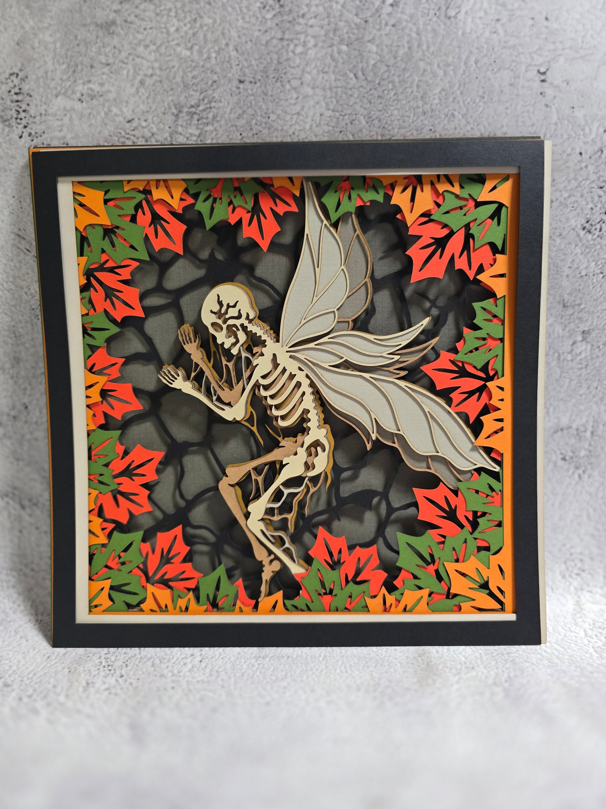 Crafted with precision, this Dead Fall Fairy shadow box features 12 intricately layered levels, creating an immersive three-dimensional display. Each layer adds depth and detail, enhancing the visual storytelling and allowing the artwork to truly come alive. Ideal for collectors and art enthusiasts, this expertly constructed piece offers a sophisticated way to showcase unique creativity and craftsmanship.